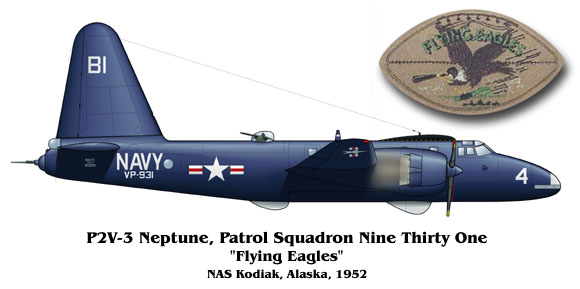 ![]() The invasion of South Korea by the North Korean army on 25 June 1950 caught U.S. forces by surprise. At that time, the U.S. Navy had only one cruiser, four destroyers and a few minesweepers on station in the Sea of Japan. The North Koreans and communist China, were primarily land powers with no significant naval forces. Control of the air, while soon achieved by NATO forces, was never absolute. Throughout the war, the efforts of North Korean pilots assisted by Russian and Chinese "advisors" presented a constant threat to the security of the patrol squadrons. Between 11 May and 22 November 1952, four attacks were made by MiGs on U.S. Navy patrol aircraft, including one reserve patrol squadron. Nine reserve patrol squadrons, six from the West Coast (Pacific Fleet) and three from the East Coast (Atlantic Fleet), were involuntarily recalled to active duty during the period 29 July 1950 to 1 March 1951. VP-931 was one of the six Pacific Fleet reserve squadrons called to active duty on 09/02/1950. VP-931 was stationed at NAS Whidbey Island, WA. flying P2V-2s and P2V-3s. On March 28th, 1953, VP-57 Deployed its P2V-5s To NAS Atsugi to support the war in Korea, patrolling the Sea of Japan and the Yellow Sea until 07/27/1953. The reserve squadron's service during the conflict was exemplary, leading to their permanent augmentation from the reserves to active duty before the hostilities concluded in July 1953. VP-931 was redesignated VP-57. After nearly six years of Neptune operations, VP-57 made its last deployment to NAS Kodiak, Alaska and Adak in January 1956 with P2V-5s. After the squadron's return to Whidbey Island in June 1956, the squadron made preparations for the decommissioning of VP-57 and subsequent recommissioning as Heavy Attack Squadron 4 (VAH-4), flying the Douglas A3D Skywarrior (07/03/1956). VAH-4 was again redesignated, this time as VAQ-131 on 11/01/1968 re-organized at NAS Alameda, California, initially equipped with KA/EKA-3Bs. In May, 1971, VAQ-131 moved to back to NAS Whidbey Island, Washington, to transition to the Grumman EA-6B Prowler. |